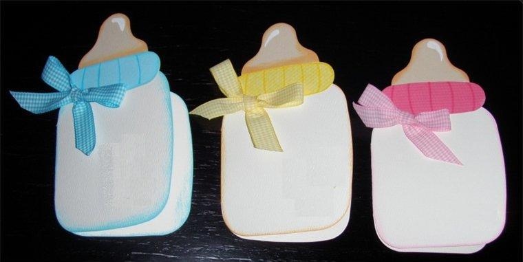 Invitatie de botez sub forma de biberon, diverse combinatii de culori