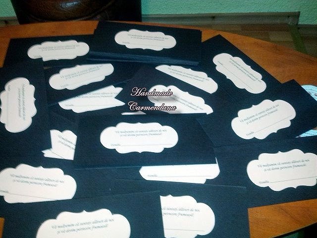 Bine ati venit pe blogul meu! Aici gasiti invitatii pentru nunta sau botez, plicuri de diferite dimensiuni si culori pentru invitatiile dv precum si plicuri de bani, meniuri, carduri de asezare, carduri de multumire Daca nu gasiti ce cautati pe acest blog, ma puteti contacta pentru a realiza doar pt dv ceea ce va doriti; Pentru informatii, ma puteti contacta la adresa de mail sidanap@yahoo.com sau la nr de tel. 724508829 Toate produsele pot fi facute si cu materialul dv.